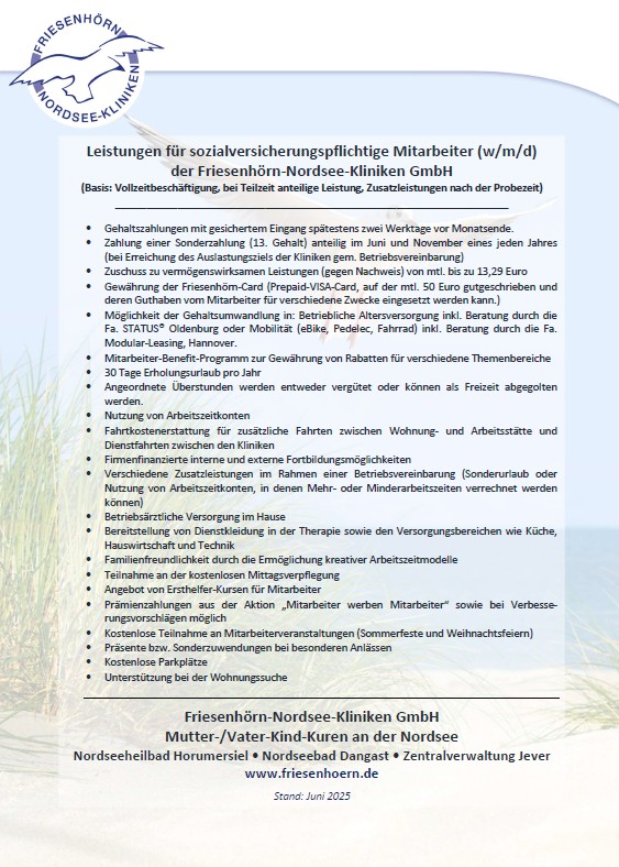 Diese Aktion gilt sowohl für die Friesenhörn-Nordsee-Kliniken GmbH als auch für das Tochterunternehmen KS-Gebäudemanagment GmbH!